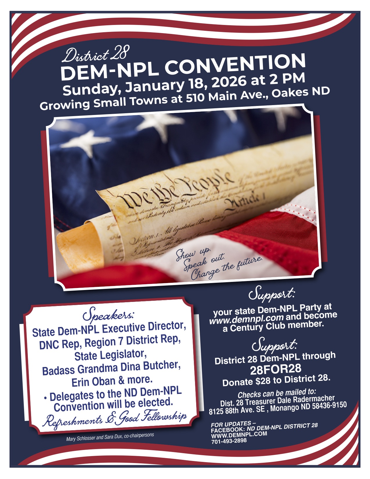 Meet District 28 Dem-NPL candidates Richard Schlosser, Sara Dux, and Mary Schlosser, and chat about issues that matter most to you. Hear about how small changes can make big impacts on rural communities!